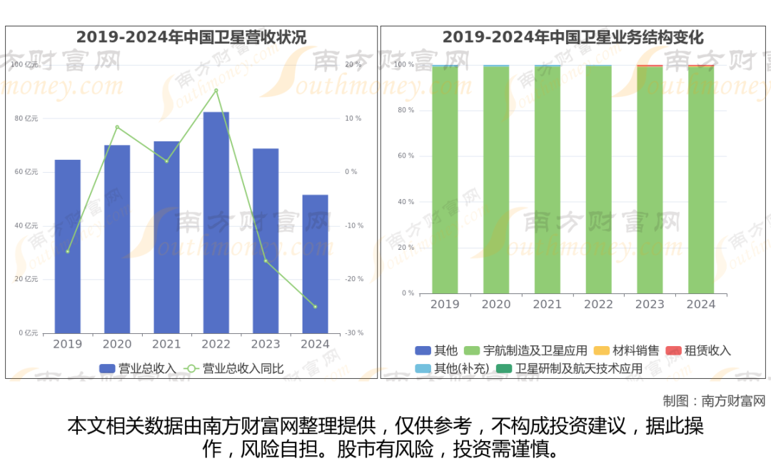 根据南方财富网产业链数据显示,公司产品线涵盖宇航制造、卫星应用等产品;产品广泛应用于光学遥感、电磁与微波遥感、通信、科学与技术试验等领域。