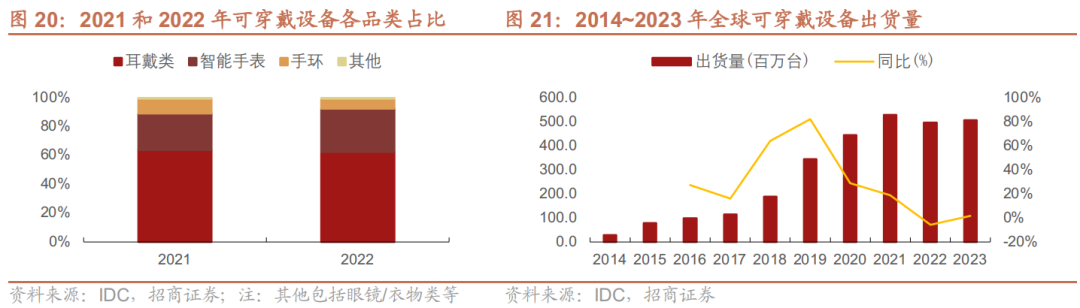 广义的可穿戴设备主要涵盖耳戴设备、智能手表、手环、XR以及衣物类等其他品类。其中TWS/OWS、智能手表是主要品类,同时衍生出智能眼镜、智能影像设备、佩针等新形态终端。