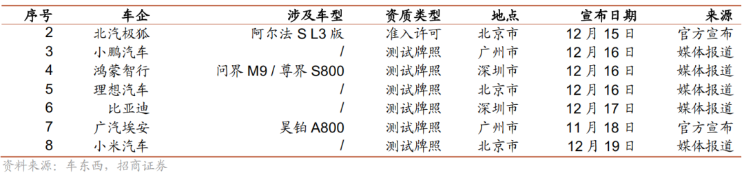1)政策方面,9月工信部对《智能网联汽车组合驾驶辅助系统安全要求》强制性国家标准公开征求意见,L2级辅助驾驶强制性国标有望迎来加速落地;12月工信部正式公布长安深蓝和北汽极狐两款电动轿车获中国首批L3级有条件自动驾驶车型产品准入许可。除上述两款获正式准入许可的L3级自动驾驶车型,目前国内还有小鹏/问界/尊界/理想/比亚迪/广汽埃安/小米等多车企正在进行L3级自动驾驶测试。我们预计2026年L2 及L3级智能驾驶商业化落地将提速。