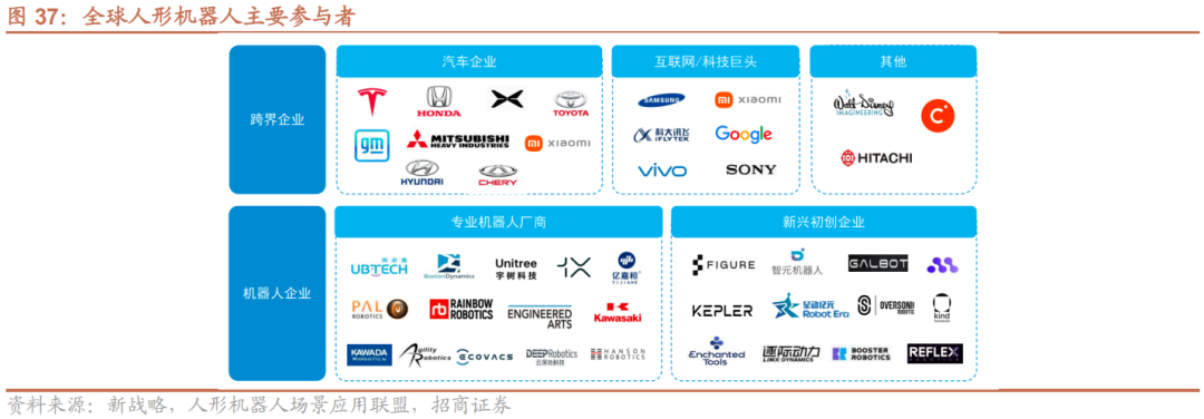 远期来看,人形机器人市场空间可达百万亿美元。根据深企投产业研究院《2024年人形机器人行业研究报告》,从机器换人的角度来看,由于人口老龄化、劳动力人口下降和人力成本上升等问题,人形机器人的应用前景广阔。人形机器人能够发挥类人能力,用类人的感知、决策、运动和执行能力来帮助人们面对生产生活中的各种问题。随着通用人工智能、感知和动力系统等方面取得了巨大进步,人形机器人性能得到全面提升,成本逐渐下降,部署步伐加快,相关应用场景也不断扩展,应用领域将全面覆盖从制造业到医疗、救援、服务业等各个领域。马斯克预测最终机器人:人的比例是1:1 甚至2:1,未来人形机器人需求量可达100亿台甚至以上,远期对应空间百万亿美元级别。