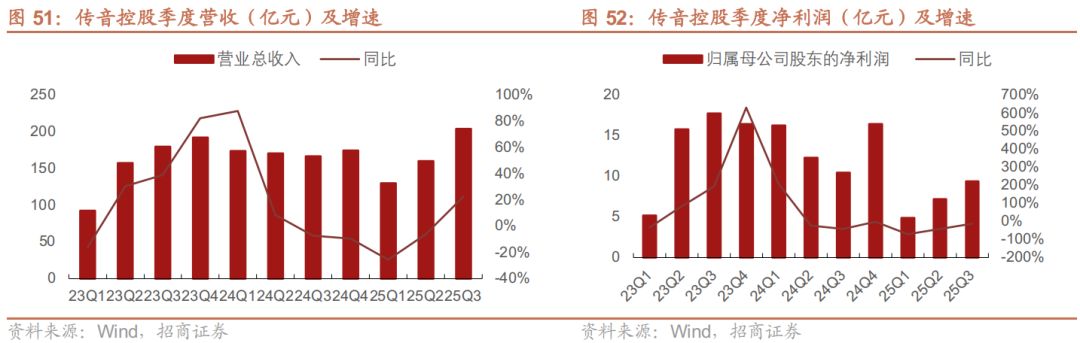 (7)传音:预计存储涨价压力仍将持续,公司将通过加强合作、灵活调价以降低影响。25Q3营收204.7亿元,同比 22.6%/环比 27.3%,归母净利润9.4亿元,同比-11.1%/环比 29.4%。归母净利润下滑主要系市场竞争以及存储成本综合影响,毛利额减少所致。目前行业存储供应相对紧张,公司将通过国内长鑫合作等保证LPDDR4X的基本供应,同时启动SoC接口改版,保证核心零部件供给。公司还将根据不同地区的竞争情况和自身市场地位调整新老产品的产品规划和价格水平,以实现量和利的平衡。关注后续手机大盘表现及公司新品规划及调价情况,同时关注公司在拓品类、互联网等新业务进展,以及AI应用趋势对公司端侧流量入口价值的持续释放。