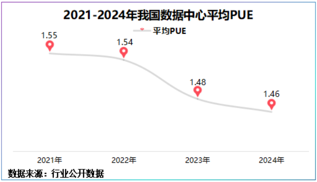 2023年我国数据中心PUE为1.48,2024年进一步降至1.46,2025年起更是调整至不得高于1.3,降耗日益趋严。