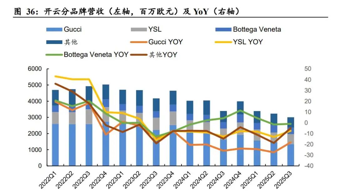分地区来看,亚太地区环比快速恢复。24Q4 以来,公司亚太地区(以大中华区为主) 降幅逐步收窄,并于 25Q3 出现了正增长。公司在业绩会表示中国奢侈品需求出现 了改善的早期迹象。按照固定汇率计算,亚太地区销售额本季度按照固定汇率增长 了 10%,慢于集团整体,但鉴于该地区在集团的较大占比,我们认为亚太复苏对集 团业绩的增速环比改善做出了较大贡献。