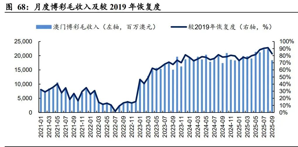 从游客数量角度分析,当前中国大陆赴澳游客数量已经全面恢复至疫情前水平。我 们认为由如下因素驱动: (1)宽松签注政策:2023 年初,旅行团业务重启,此后,遍历政策持续出台,2025 年 1 月 1 日起,毗邻的珠海市居民可每周赴澳一次并停留最长 7 天。此外,内地扩 大了赴澳个人游签注城市范围,将 IVS 试点覆盖到更多省市,并上调了内地旅客携 带自用商品入境澳门的免税额,提高了澳门旅游的吸引力。(2)会展活动持续增加:澳门致力于打造“世界休闲旅游中心”,政府和博企合力 推动会展业和团队旅游复苏。2023-2025 年,澳门成功举办了多场大型展览和会议 活动,如 BEYOND 国际科技展、G2E 亚洲博览会等,吸引商务旅客入境并延长逗 留时间,带动酒店入住和博彩收入增长。 (3)娱乐活动密集举办:中国大陆结束疫情管控后,澳门积极剧本大型演唱会等娱 乐活动。2023-2024 年接连举办天王巨星演唱会(张学友、G-Dragon 等),演出吸引 大批高端客流入境,对博彩收入尤其是高端中场业绩起到了显著拉动。