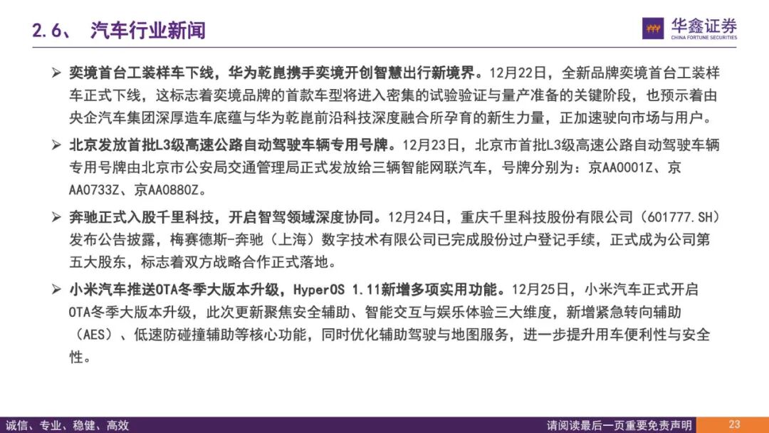 【华鑫汽车|行业周报】人形机器人与具身智能标准委员会成立,自动驾驶加速迈向“量产应用”
