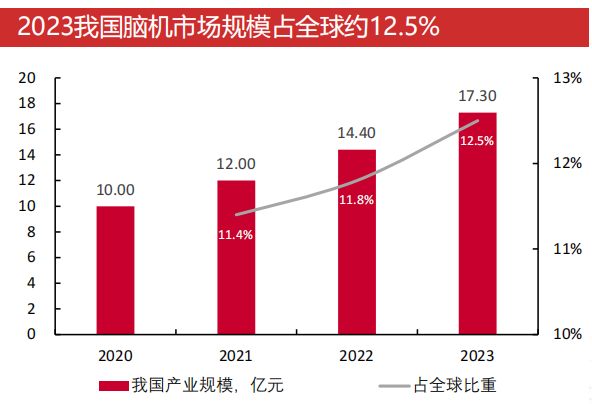 中国“十四五”将“脑科学与类脑研究”列为前沿科技项目,据前瞻产业研究院数据,我国脑机接口行业市场规模从2020年的10亿元增长到2023年的17.3亿元,占全球市场规模比重提升到12.5%;“十五五”规划更将其列为未来产业重点方向;北京、上海等地已出台专项扶持政策,目标到2030年培育3–5家全球领军企业。这标志着医疗器械不再局限于传统耗材与设备,而是向神经工程、人工智能融合的硬科技方向跃迁。