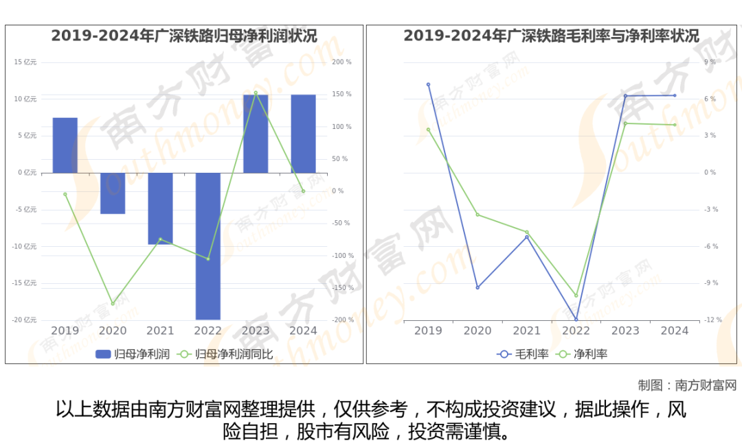 广深铁路财务数据显示(如上图): 2024年实现营业总收入 270.9亿,同比增长3.42%。近五年复合增长率(CAGR)为13.46%。