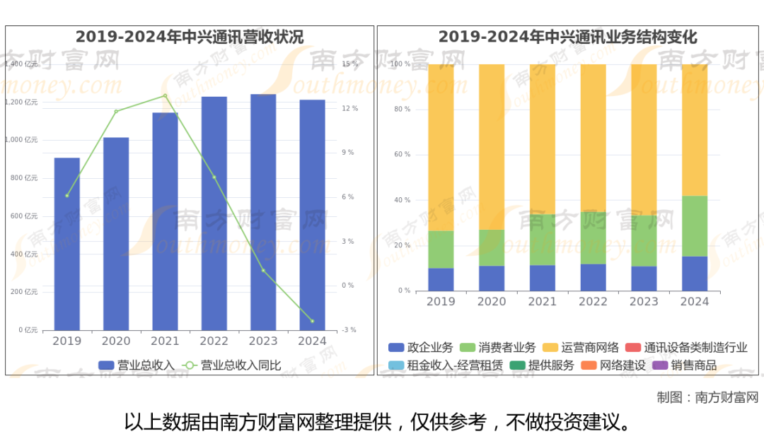 中兴通讯于1997年11月18日在深圳证券交易所上市,公司主营业务为为客户提供满意的ICT产品及解决方案,集“设计、开发、生产、销售、服务”等一体,聚焦于“运营商网络、消费者业务”。