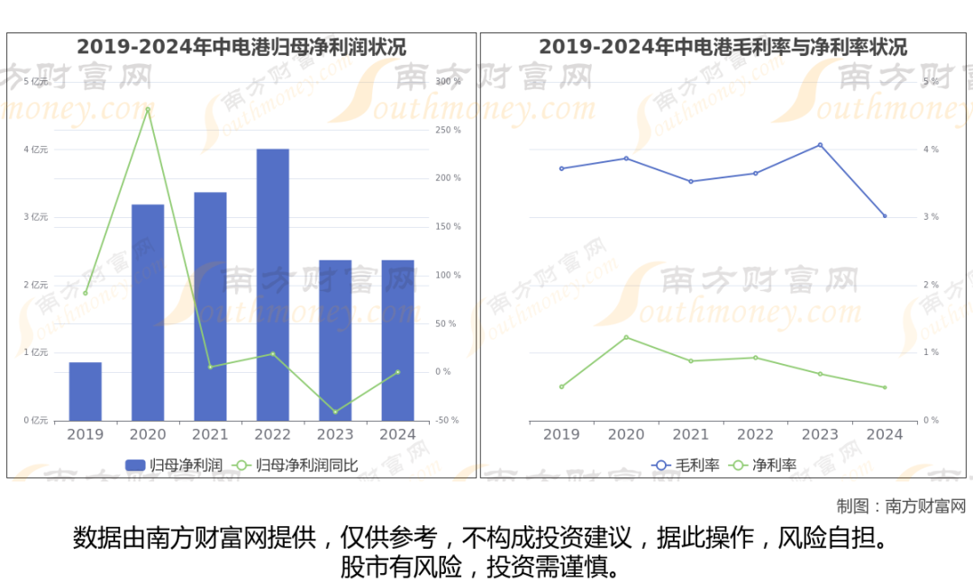 2024年公司归母净利润2.37亿元,同比增长0.18%。净利润2.37亿,近5年复合年增长率-7.18%;净利率0.49%,近5年复合年增长率-20.55%;毛利率3.02%,近5年复合年增长率-6.01%。