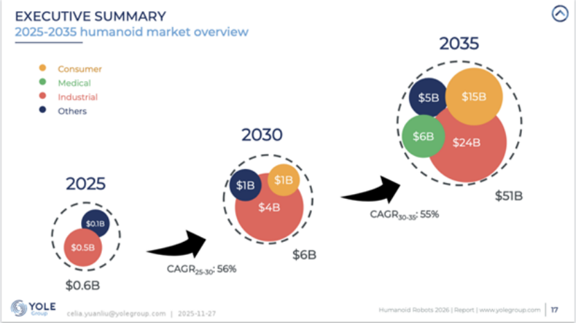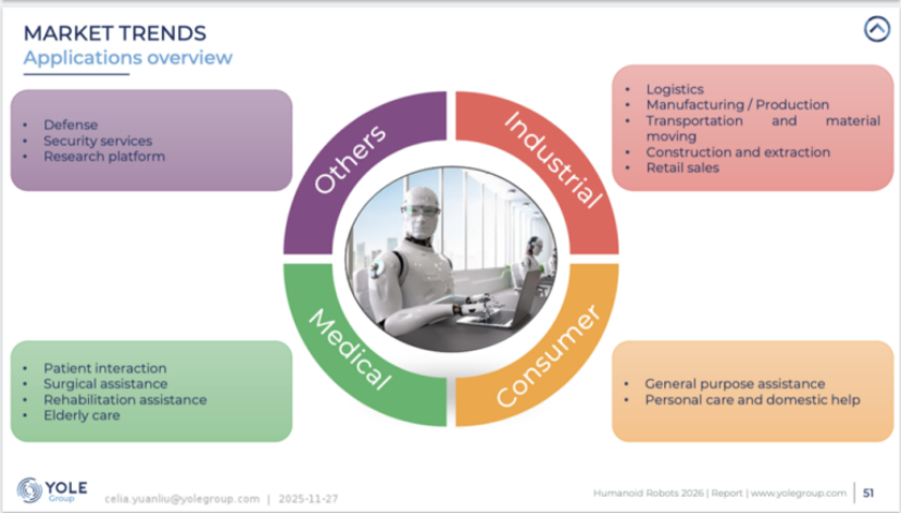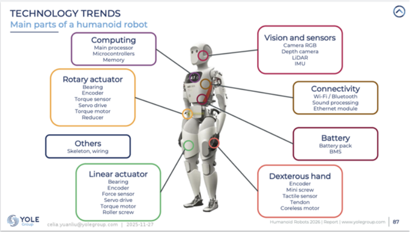 今年,Yole Group发布了专门的《2026 年人形机器人报告》,深入分析了当前市场格局、关键技术创新以及人形机器人生态系统中涌现的商机。