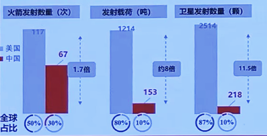 中美航天实力全球领先:火箭发射次数、载荷、卫星数量占比均超80%。