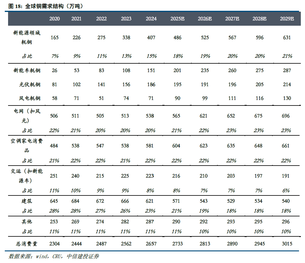 除AI产业链外,新能源产业的蓬勃发展同样构成铜需求增长的核心驱动力。预计中国新能源汽车、光伏领域的铜需求占比将分别从2021年的2%提升至2027年的10%。