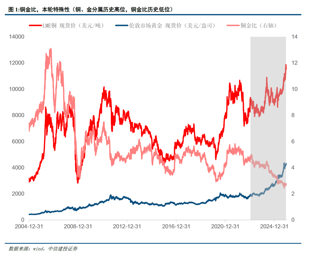 铜金比的历史性低位或指向,2025年黄金的“超涨”是核心矛盾。