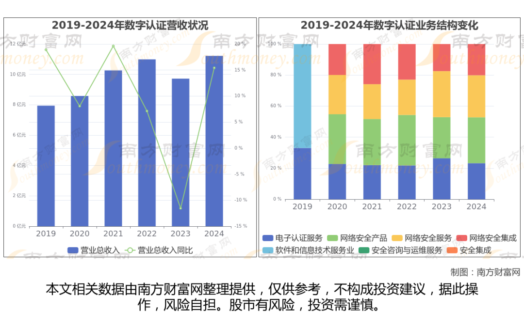 根据南方财富网产业链数据显示,公司产品线涵盖电子认证服务及相关产品、网络安全产品、网络安全集成、网络安全服务等产品;产品广泛应用于智慧医疗、数字金融、企业数字化、智慧教育等领域。