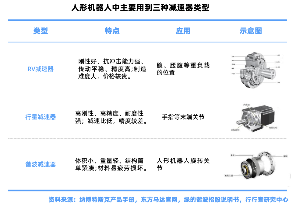 人形机器人用减速器可类比汽车变速箱,属于机器人的核心精密零部件之一。
