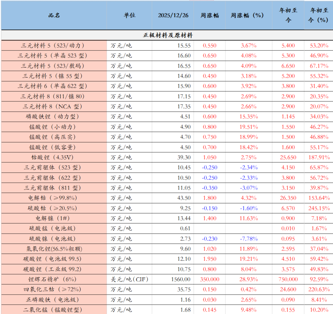 【太平洋新能源】新能源+AI周报:储能、锂电有望持续超预期,涨价、AI+提供弹性(第37期20251221-20251227)