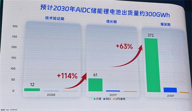 高工产业研究院(GGII)2025年12月报告印证了市场潜力:AIDC储能锂电池市场将经历技术验证期-增长期-爆发期的三阶发展,预计到2030年全球AIDC储能锂电池出货量将达约300GWh,未来增长动能强劲。