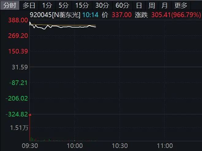 北交所上市新股N蘅东光大幅高开超1000%,报350元,截至发稿,仍涨超966%。资料显示,蘅东光为全球光器件“小巨人”,公司主要产品包括光纤连接器、光纤柔性线路产品、配线管理产品等光纤布线类产品等。