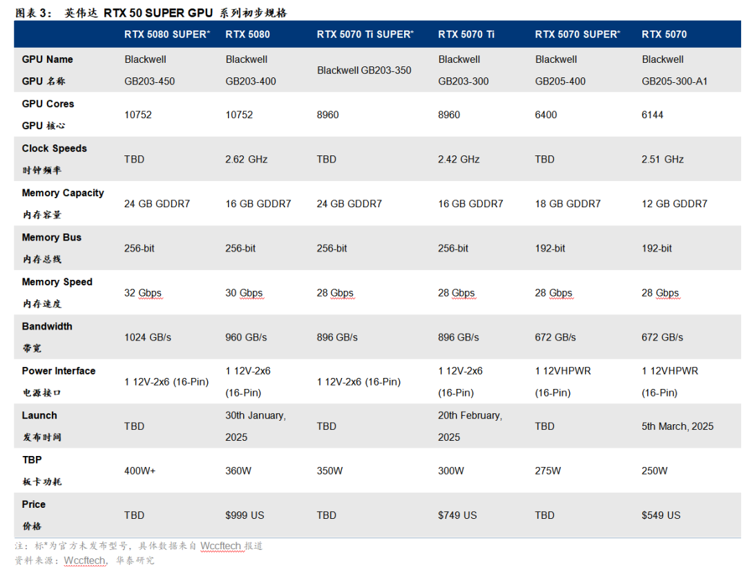 芯片巨头的策略或现分化。据Wccftech预测,英伟达(NVIDIA)可能淡化消费级显卡(RTX 50 Super系列或因DRAM涨价延迟发布),CEO黄仁勋或重点阐述“Physical AI”战略,推动AI算力向机器人与工业场景延伸。AMD 或采取稳健升级策略,桌面端可能推出搭载3D V-Cache的Ryzen 9000系列,移动端发布Ryzen AI 400系列以巩固PC市场。英特尔(Intel)或将Panther Lake(Core Ultra Series 3)作为决胜点,若能形成清晰的产品矩阵与OEM支持,或有助于缓解市场对其先进制程执行力的疑虑。