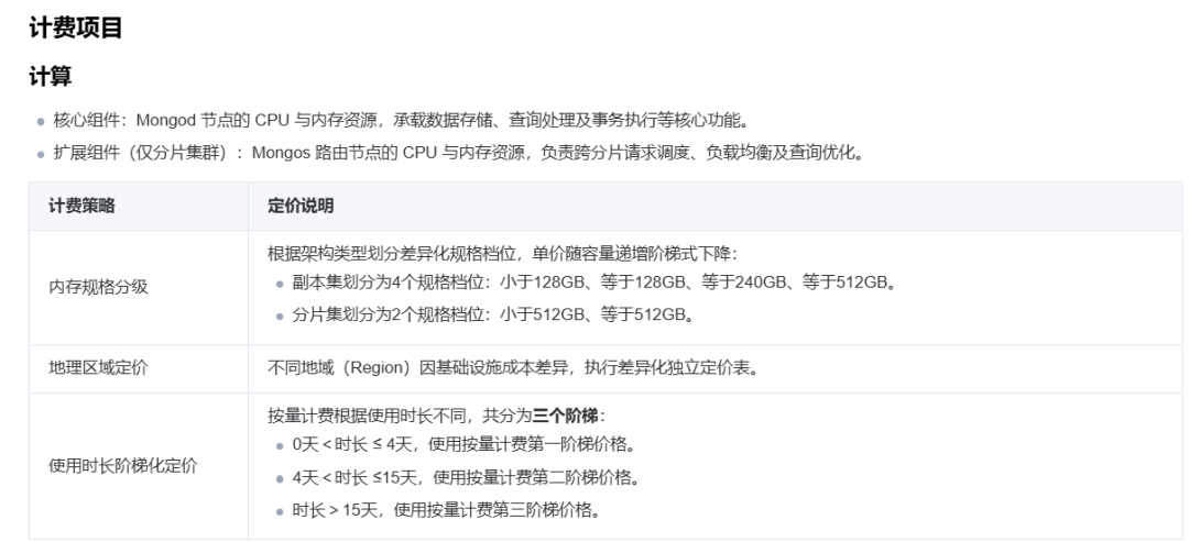 以下是腾讯云数据库 MongoDB 的计费模式及定价标准: