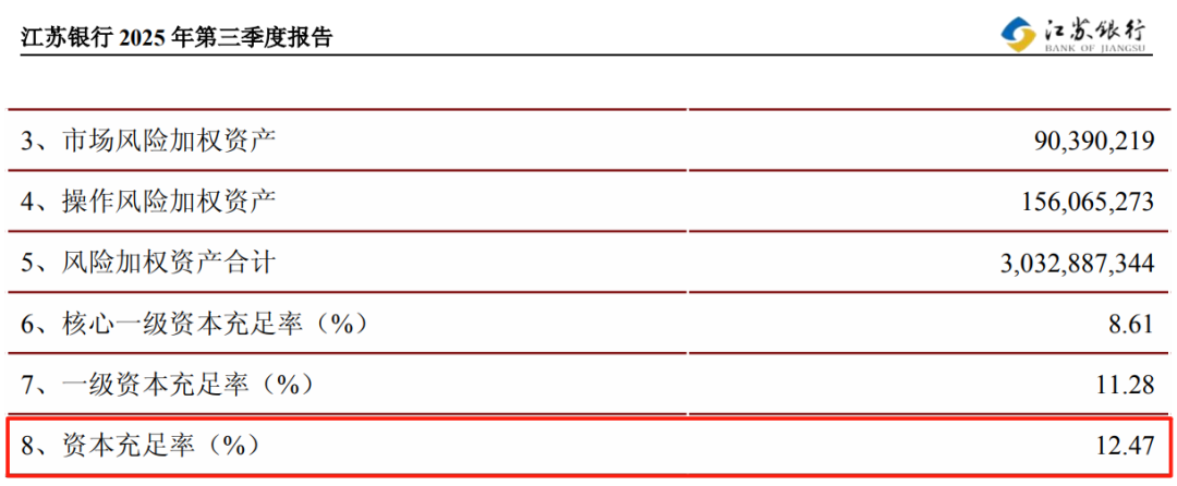 然而,在这些亮眼数据的背后,江苏银行的资本充足率却拉响了警报。截至2025年9月末,其核心一级资本充足率已降至8.61%,较去年末下降0.51个百分点。