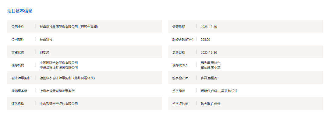12月30日上交所官网显示,长鑫科技集团股份有限公司(以下简称“长鑫科技”)申报科创板IPO获受理。