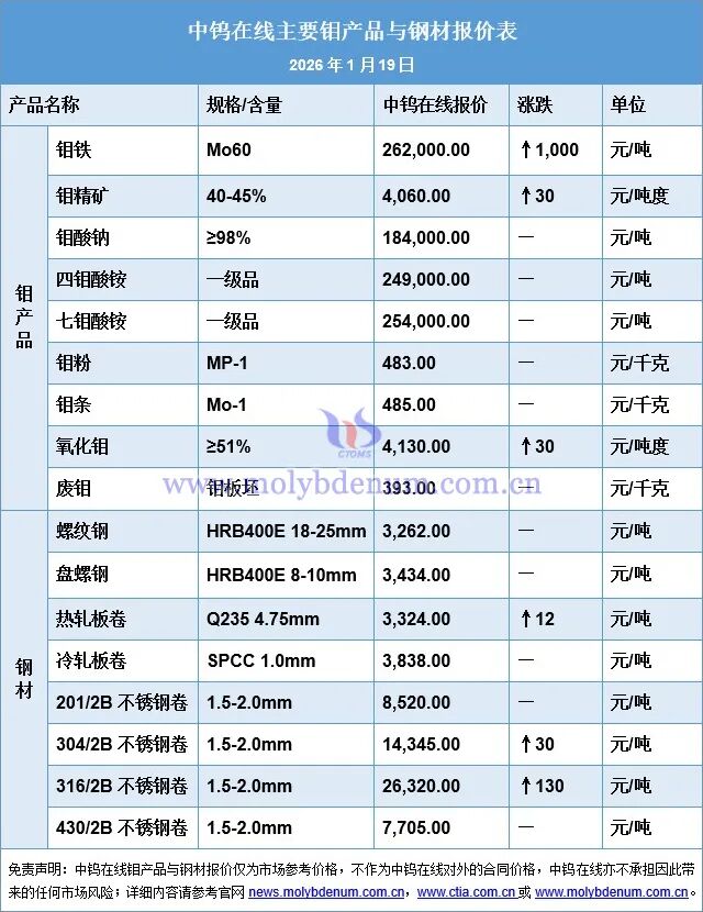 2026年1月19日钼市场行情