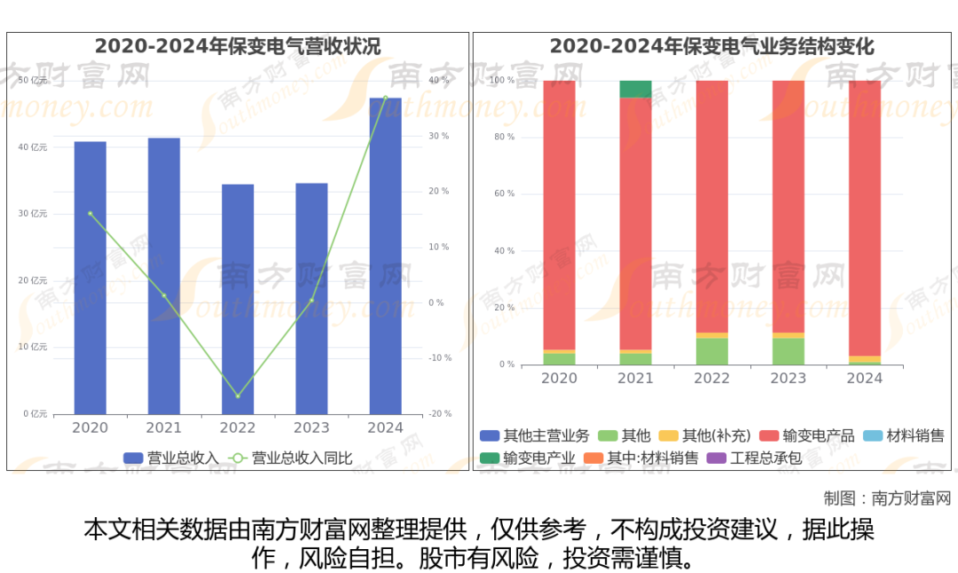 (如上图)保变电气2024年全年营业收入为47.4亿,同比增长36.92%,近五年复合年增长率3.79%。