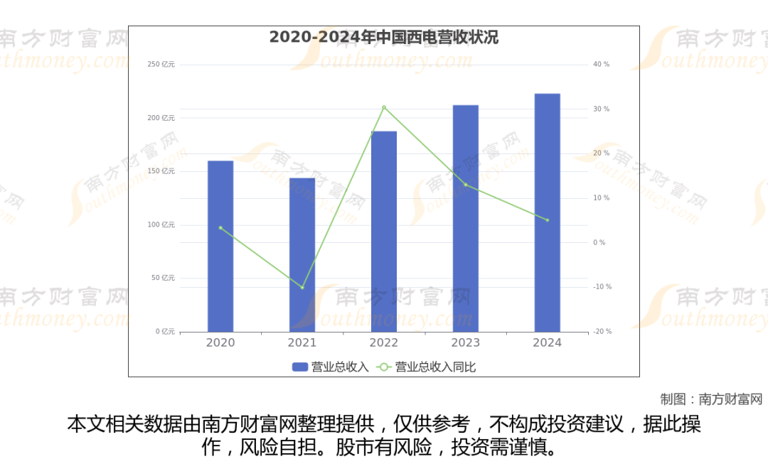 据年报数据显示(如上图),中国西电过去一年实现营业收入222.81亿,同比增长5.07%,近5年复合年增长率8.64%。