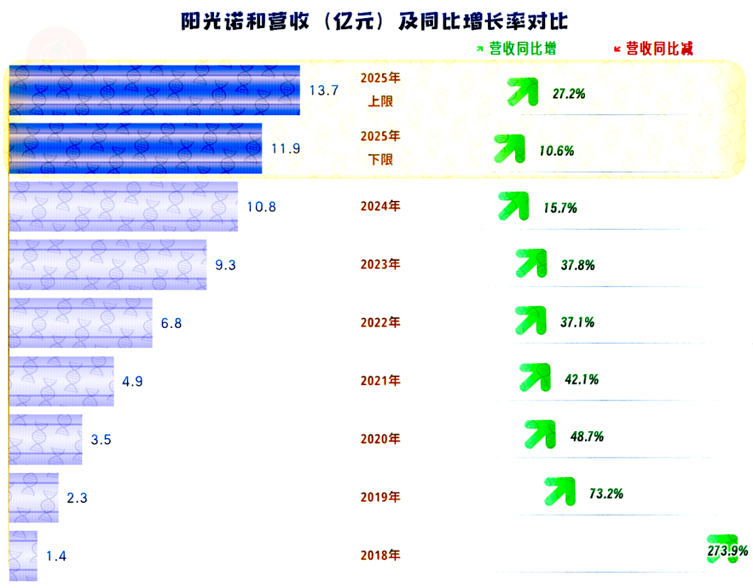 从其业绩预告看,阳光诺和2025年的营收规模在11.9-13.7亿元之间,同比增长可能在两成左右。这不仅延续了有公开数据以来一直保持的增长趋势,增长减速的现象,可能也会得到一定程度的缓解。