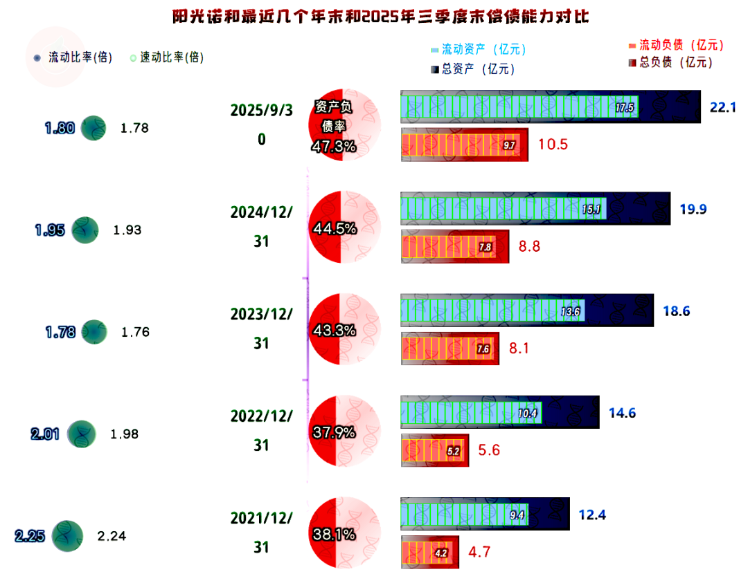 阳光诺和的长短期偿债能力都是极强的,资产结构也不重,如果业务增长,资产方面可承受的增长空间仍相当大。现在的关键,可能是怎么去把业务给承接回来,而不是自己的硬件等条件。