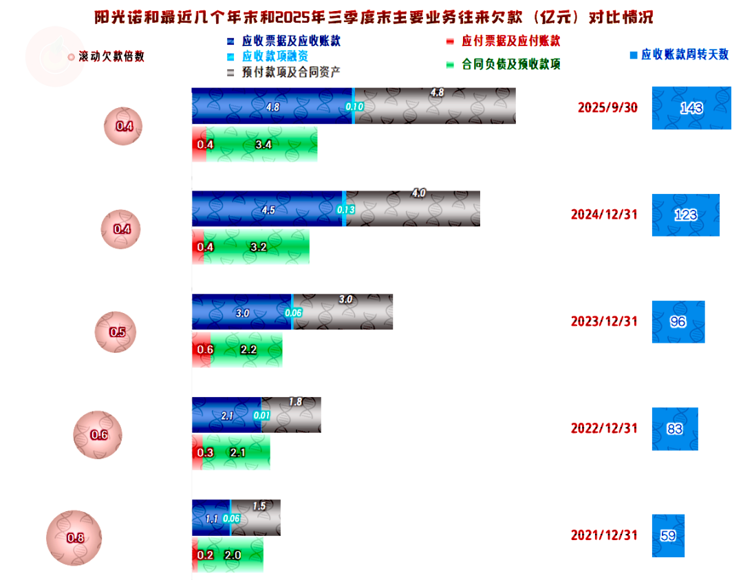 阳光诺和的应收和预付类的业务款项在持续增长,这是我们前面看到这方面“信用减值损失”增长的主要原因。可以通过预收性质的款项增长,降低一些现金流方面的压力,但还是覆盖不了那些需求方面增长的。