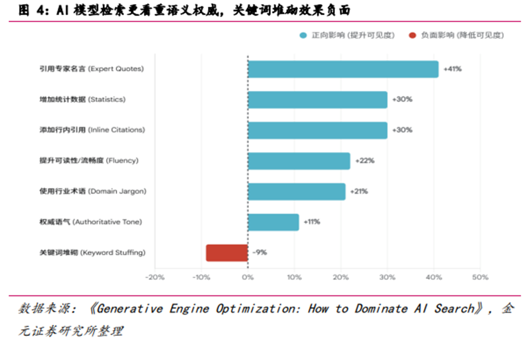 AI模型更看重“语义权威”(Semantic Authority)和E-E-A-T(专业性、经验、权威性、可信度)的深度验证。基于普林斯顿大学与佐治亚理工学院的研究表明,GEO系统在选择信源时表现出显著的特征偏好。