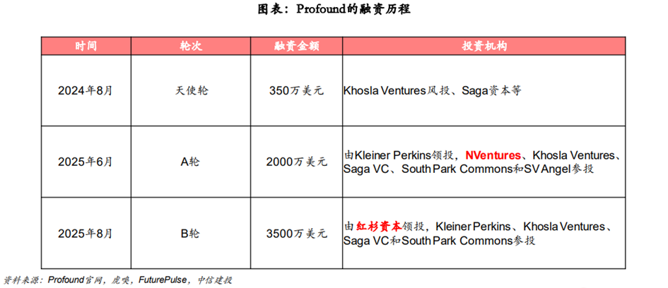 Profound成立至今已完成三轮融资,累计融资金额达5850万美元,在GEO创业公司中排名第一,最新估值超1亿美金。24年8月种子轮融资350万美元,主要投资者包括Khosla Ventures风投、Saga资本等;25年6月获得由Kleiner Perkins领投的A轮融资2000万美元,NVentures也参与了该轮投资;25年8月再度获得3500万美元B轮融资,由红杉资本领投。