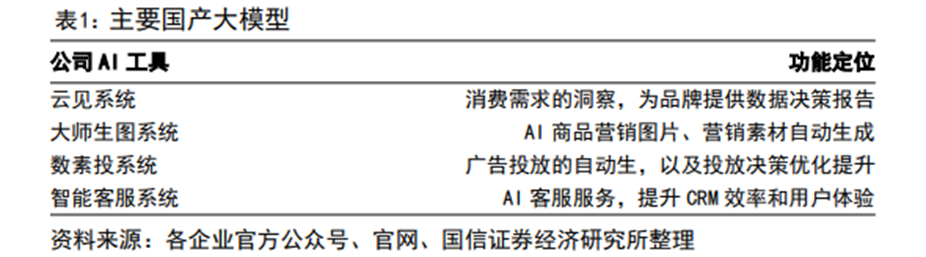 商业化落地迎提速,“AI 电商”或成应用落地最佳出口。代运营公司对渠道及流量变革反应灵敏,有望率先受益。能够认为,营销模式变革将倒逼品牌转变营销投放策略,初期多数品牌商缺乏GEO所需的技术研发、多模态内容生产与全平台适配能力。而国内大模型玩家与电商巨头重合度高,电商代运营企业因与平台合作密切,同时对于消费者洞察、品牌投放策略有较深的理解,有望较快建立GEO内容生成能力,为品牌提供从语义解析、结构化内容构建到效果追踪的全流程GEO服务,助力提质增效,因此判断离渠道跟媒介更近的代运营商有望初步受益。