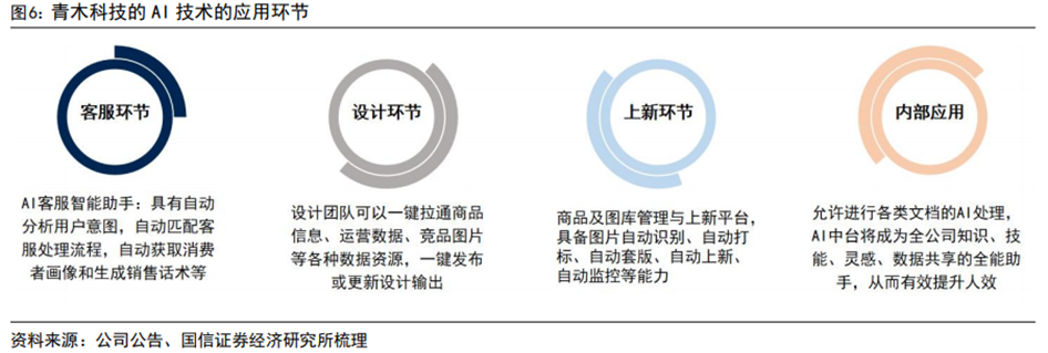 公司较早布局AI技术与业务的融合,2023年已完成数据中台与AI技术的深度融合升级,自主研发“青木青灵”AI系统,并率先在电商运营的客服响应、创意设计、店铺日常运营等核心环节落地应用,实现运营效率的初步提升。