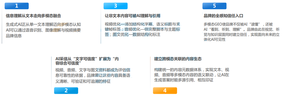 1、GEO从文字内容扩展至视频、音频、图像与图文等多模态内容形态