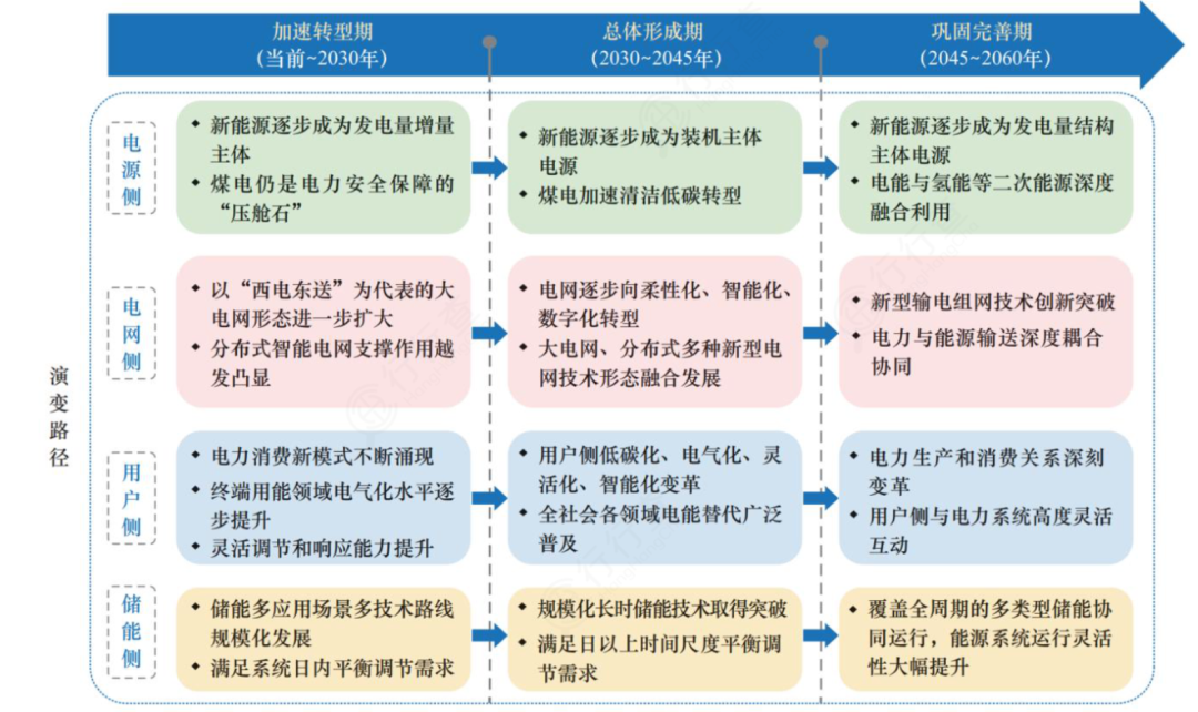 新型电力系统建设将遵循“三步走”发展路径,分为加速转型期(当前至2030年)、总体形成期(2030至2045年)和巩固完善期(2045至2060年)三个阶段。