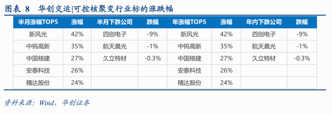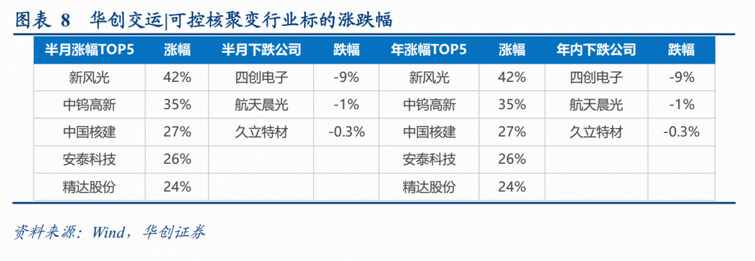 涨幅前五分别为:新风光( 42%)、中钨高新( 35%)、中国核建( 27%)、安泰科技( 26%)、精达股份( 24%);