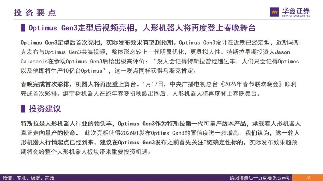 【华鑫汽车|行业周报】Optimus Gen3定型后首次亮相,高阶自动驾驶产业拐点有望加速到来