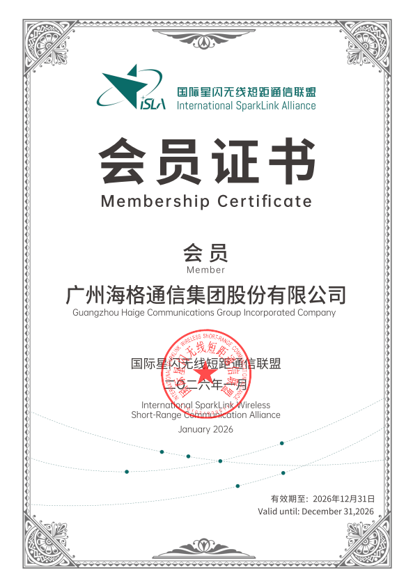 星闪是全栈原创的新一代无线短距通信技术,具备低时延、高可靠、高同步精度、支持多并发、高信息安全和低功耗等卓越技术特性。海格通信(股票代码:002465)持续推动自身核心无线通信优势技术与星闪技术融合,已连续三年成为国际星闪无线短距通信联盟(SparkLink Alliance,简称 “星闪联盟”)会员单位,深度融入星闪联盟产业生态,为新一代无线通信生态注入强劲创新动能。