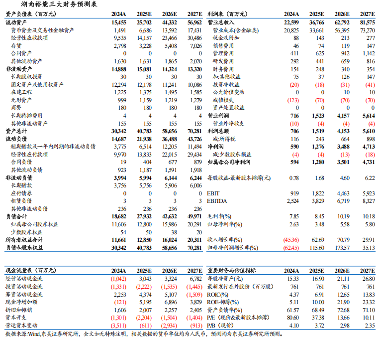 湖南裕能三大财务预测表
