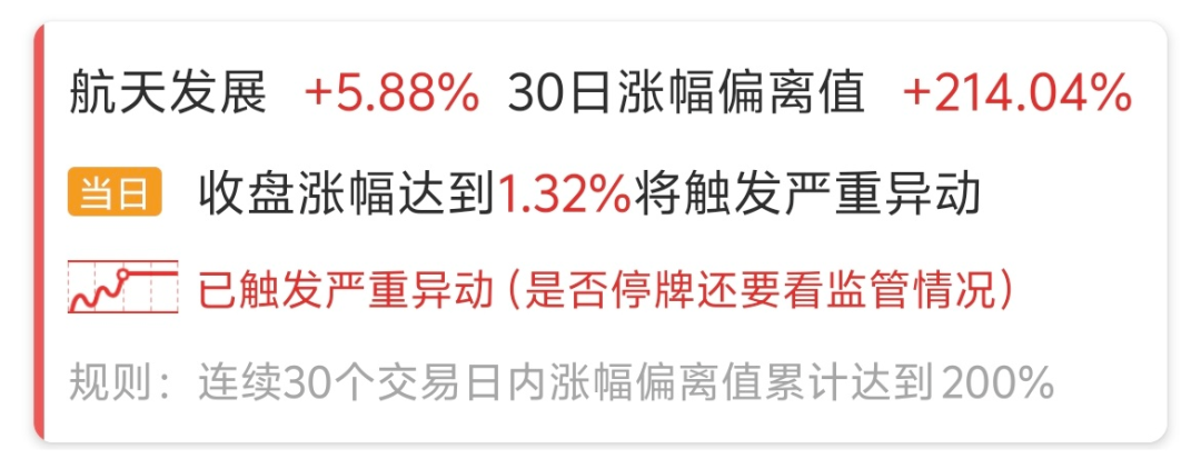 在一众盛况之下,商业航天板块突然给所有人浇了一盆冷水。2026年1月13日,根据深圳证券交易所的交易数据披露,多家相关企业被纳入异动股票名单,航天发展就是其中之一,开始日期为2026年1月13日,结束日期为2026年1月26日,类型为严重异动。