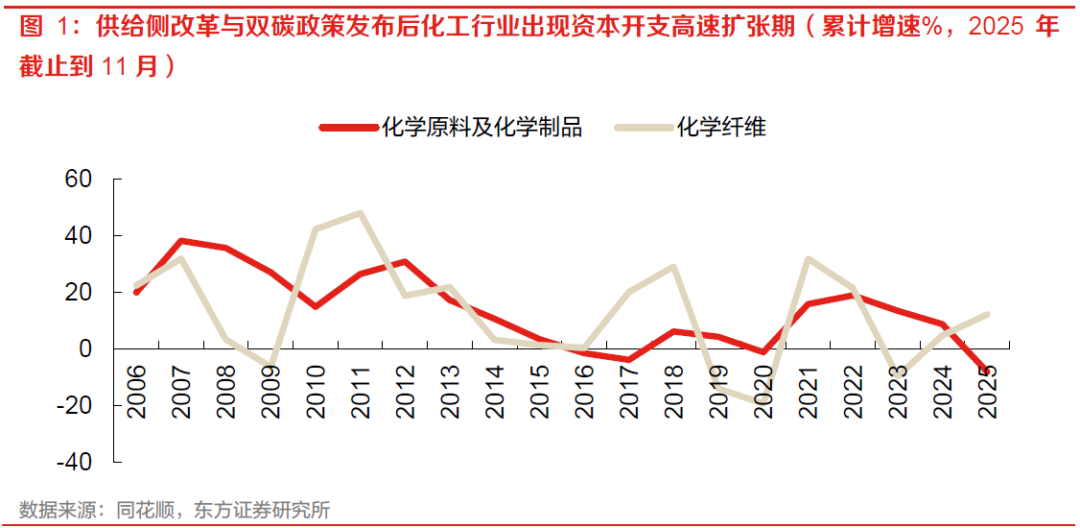 2015年中央财经小组会议上首次提出了“供给侧结构性改革”;2020年总书记在联合国大会上郑重宣布中国的双碳目标。这两个年份对于化工行业来说,是开启重大政策调控的关键年。受政策影响,化工行业在安全、环保、能耗、碳排等各方面不断规范化。虽然在政策推出的短期内会对行业资本开支造成一定影响,但之后反而会出现一轮资本开支的高峰。可以说过去多年,国家政策提高了行业的准入门槛,使得资本开支周期过后行业集中度实现了显著提升,但并没有改变企业家们扩张发展的雄心。