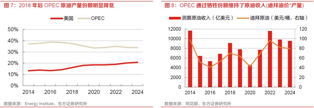 一个非常典型的参考案例就是原油。OPEC是全球最大的原油供应组织,产量占全球超三分之一。2015-2017年间,OPEC维持住了较高的产量份额,但也导致油价处于较低水平,最终原油收入也较低。2018年之后,随着其他供应方增速放缓,OPEC开始通过控制产量的方式使油价回升到了较高水平。同时虽然份额有所下降,但原油收入反而维持在了较高水平。