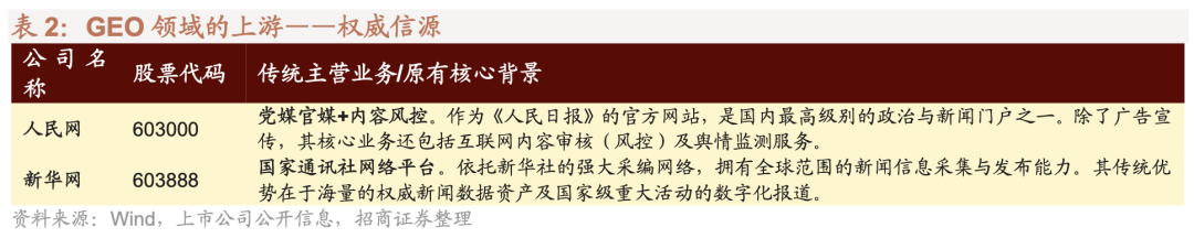 谈到GEO领域的上游——“内容与信源”,情况则有所不同。因为AI模型在训练与生成答案时天然偏好权威、准确且经过验证的数据源,这些官方及头部媒体在AI时代将掌握极高的话语权重与“事实定义权”;但是,由于其具备严肃的喉舌属性,它们并不会像商业营销号那样随意承接厂家的软文植入或针对性的GEO宣传请求,因此很难形成直接的“营销服务”盈利闭环。在AI时代,它们的价值更多体现为被大模型高频引用所带来的知名度固化,以及作为高质量语料库的数据资产价值,而非短期的广告变现。