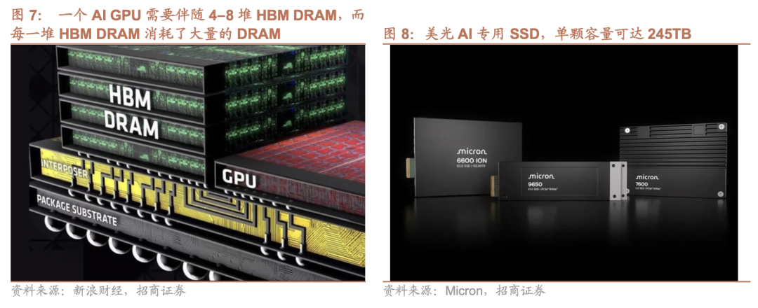 首先,人工智能(AI)成为本轮存储景气反转的首要驱动力。生成式 AI 的快速落地和算力军备竞赛,使数据中心对高性能存储的需求出现结构性爆发,尤其是 HBM(高带宽内存)和企业级大容量 SSD 长期处于供不应求状态。由于 HBM 技术门槛高、制造复杂度大,且单位产能消耗远高于传统 DRAM,存储原厂纷纷将有限的先进产能优先投向高利润的 AI 相关产品。这种由 AI 引发的“产能虹吸效应”,直接压缩了用于 PC、手机等传统领域的 DRAM 与 NAND 供给,为整体存储价格上行奠定了基础。