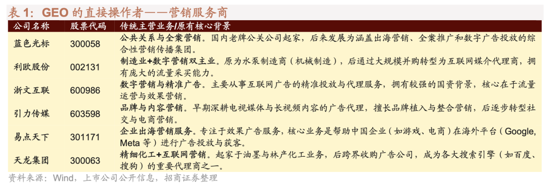 ➤ GEO领域相关的企业及GEO时代可能的盈利模式