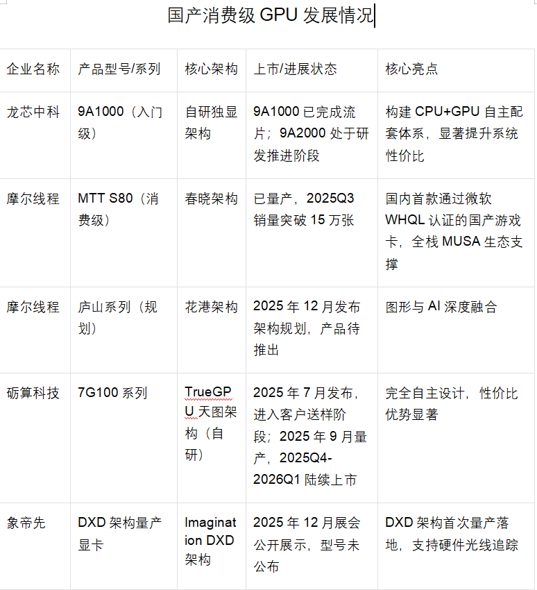国产消费级 GPU现多点突破