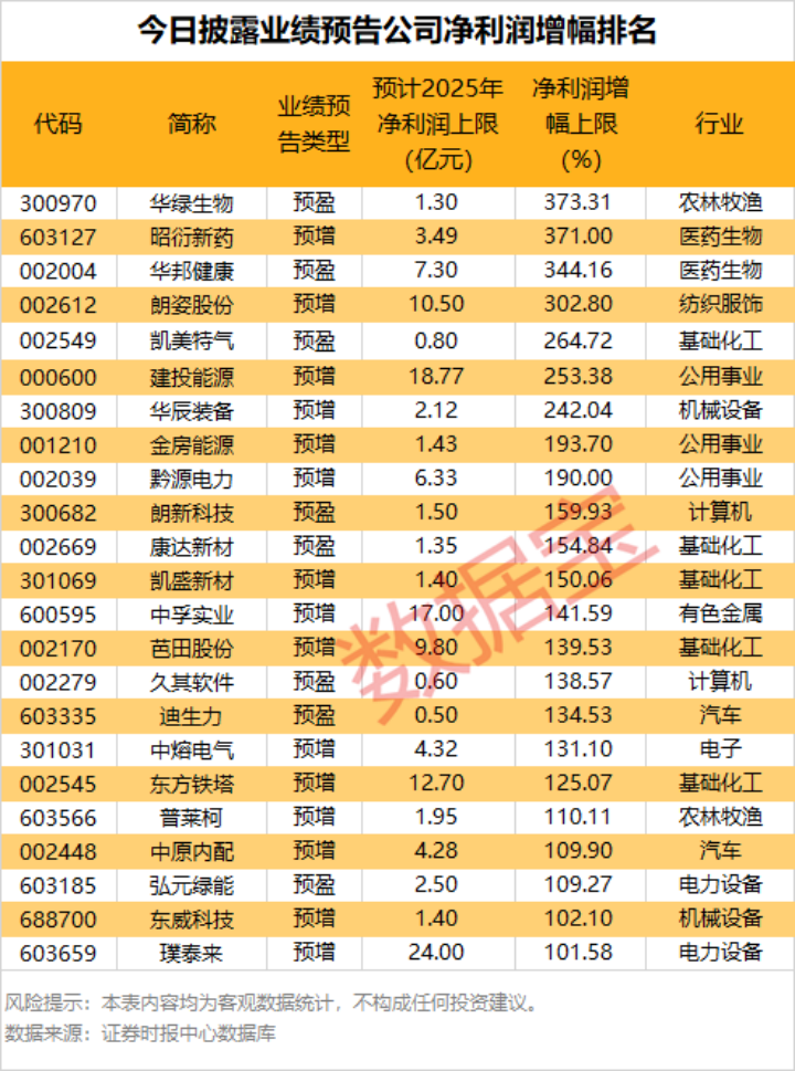 最新业绩大增股名单来了
